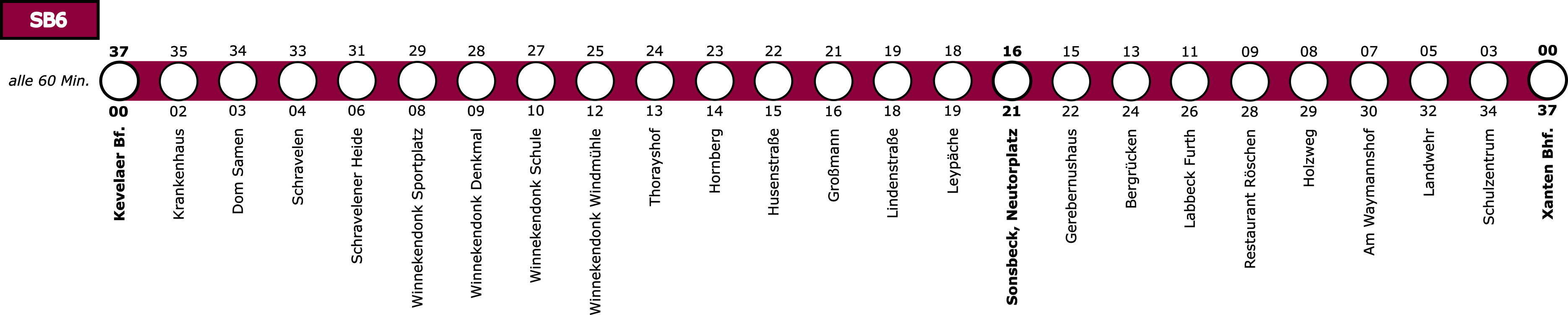 Da jedoch eine Direktverbindung Kevelaer – Xanten ohne die SB6 (X31) fehlen würde, wurde die Linie im Konzept weiter behalten. Zudem kann sie die Buslinie 37 zu einem Halbstundentakt zwischen Kevelaer Bf. und Sonsbeck ergänzen, was als sinnvoll erachtet wurde, da Sonsbeck nicht direkt an einer Zugstrecke angebunden ist.