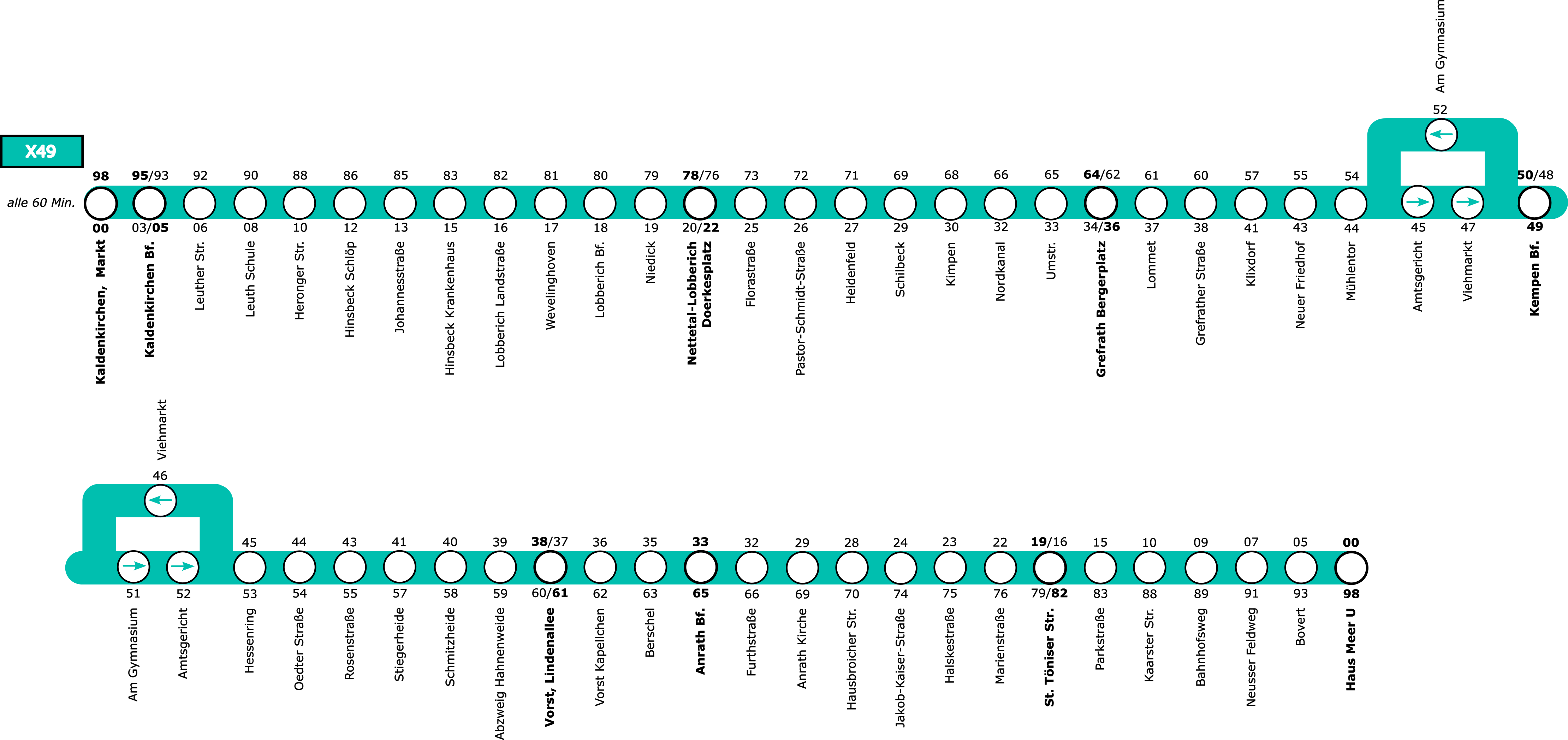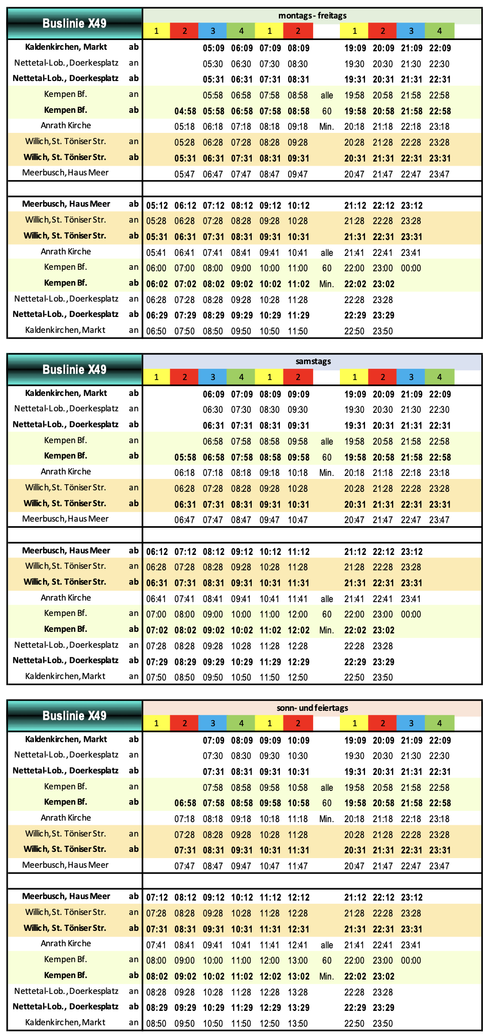 X49 Kaldenkirchen <-> 068 Tönisvorst (5 min. Umsteigezeit)